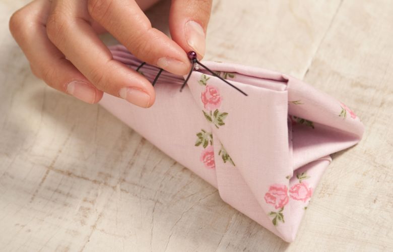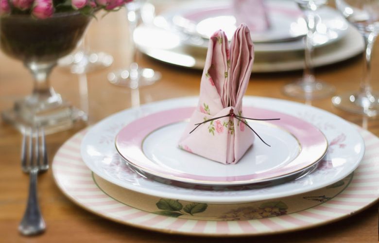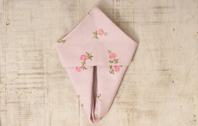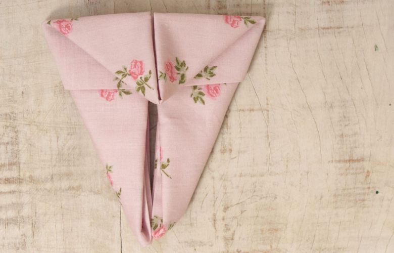 Passo 7: Vire novamente o guardanapo, e junte as duas lateraism tentando prender uma sobreposta a outra. deixando um pouco aberto para que ele fique em pé. Se quiser enfeitar, pode usar alfinetes e fios para fazer o rosto do coelho.